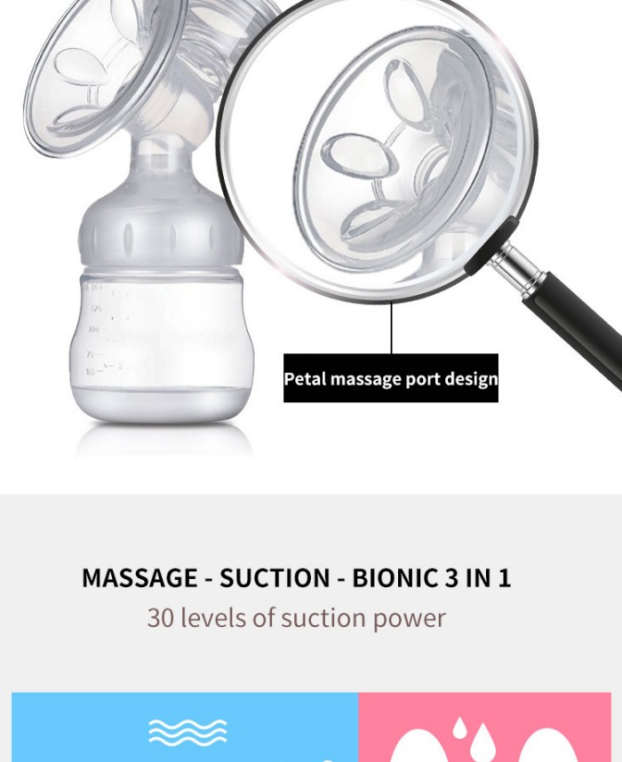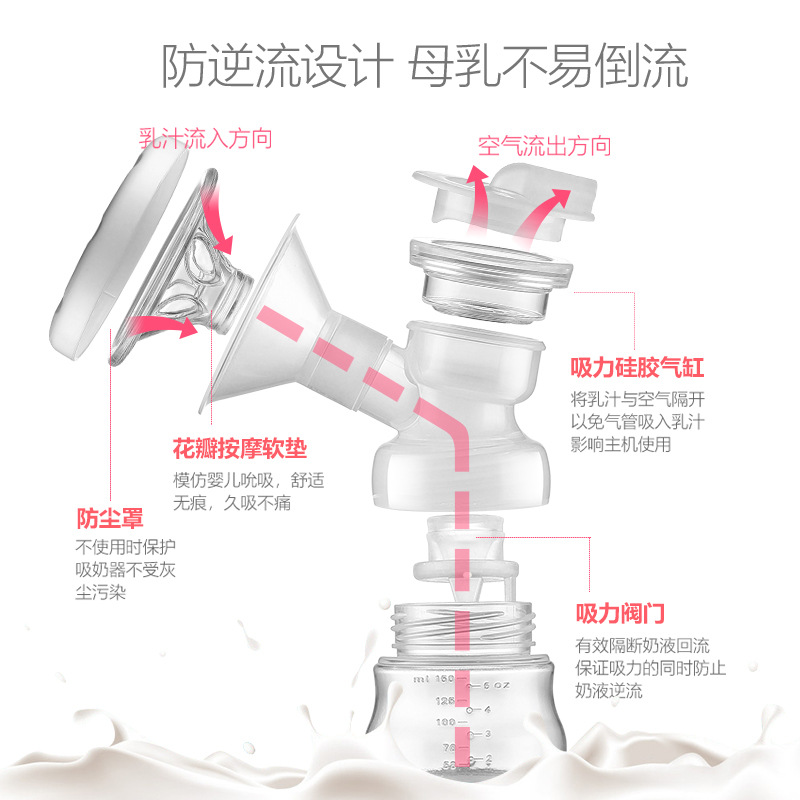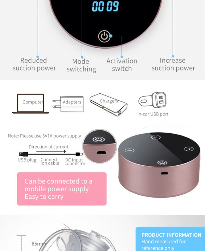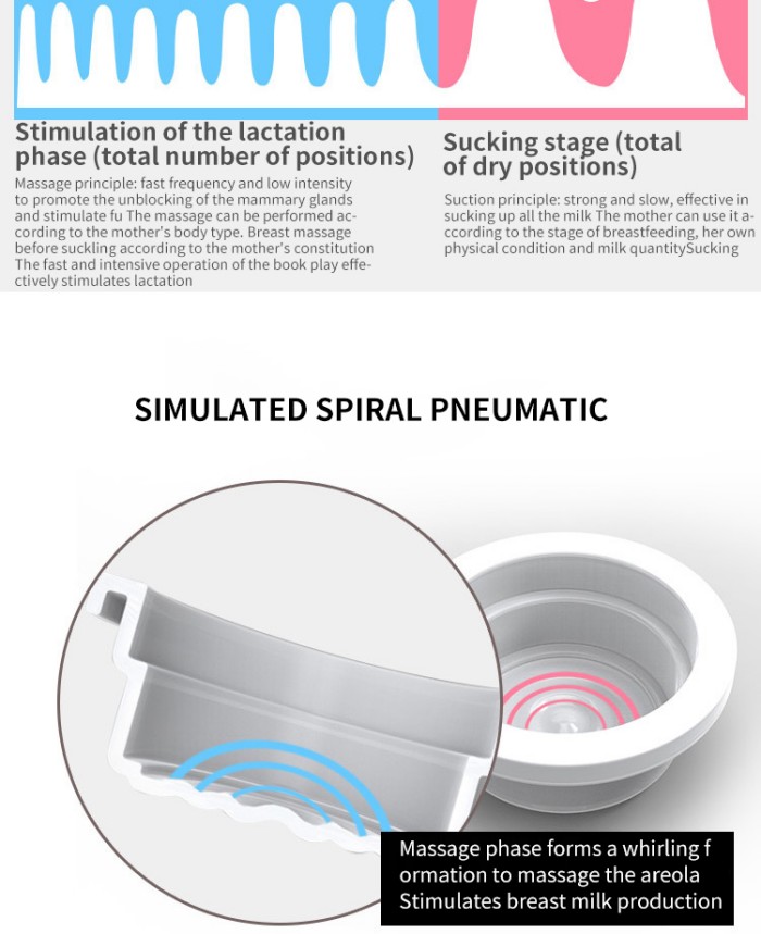 เครื่องปั๊มนมไฟฟ้าแบบกลมด้านเดียวขนาดเล็กนี้มีหลายโหมดให้คุณเลือก มีโหมดการนวดเพื่อกระตุ้นการผลิตน้ำนม โหมดการปั๊มเพื่อน้ำนมออกเร็วขึ้น และโหมดการดูดที่เลียนแบบการดูดของทารกเพื่อประสบการณ์ที่เป็นธรรมชาติและสะดวกสบายยิ่งขึ้น คุณสามารถปรับพลังดูดให้เหมาะกับความไวและการผลิตน้ำนมของคุณได้ คุณยังสามารถสลับระหว่างการดูดด้านเดียวและสองด้านได้ ซึ่งเร็วกว่าอย่างแน่นอน มันมีน้ำหนักเบาและออกแบบมาอย่างสะดวก รุ่นไร้สายมาพร้อมกับแบตเตอรี่ขนาดใหญ่ 1500mAh ซึ่งใช้งานได้ประมาณสองชั่วโมงเมื่อชาร์จเต็ม ยูนิตหลักขนาดเล็กยังจัดเก็บและพกพาได้ง่ายอีกด้วย ส่วนที่สัมผัสกับนม เช่น ลำโพง ทำจากซิลิโคนอ่อนนุ่มหรือวัสดุ PP แบบเดียวกับจุกนมหลอกสำหรับทารก สามารถต้มได้และทำความสะอาดง่าย ลำโพงสวมพอดีกับเต้านม ช่วยให้ดูดได้สบาย เป็นตัวช่วยที่ดีสำหรับคุณแม่ที่ทำงานปั๊มนม ช่วยให้คุณสามารถปั๊มและเก็บน้ำนมในที่ทำงาน ช่วยให้คุณทำงานและให้นมลูกได้โดยไม่หยุดชะงัก หากคุณต้องแยกจากลูกชั่วคราว เช่น เมื่อคุณเดินทาง เข้าโรงพยาบาล มีลูกคลอดก่อนกำหนด หรือเข้ารับการรักษาในโรงพยาบาล สามารถช่วยรักษาปริมาณน้ำนมของคุณและช่วยให้น้ำนมไหลอย่างต่อเนื่อง หากคุณยังคงคัดแน่นหรือรู้สึกอึดอัดหลังให้นม การให้น้ำนมส่วนเกินสามารถช่วยป้องกันโรคเต้านมอักเสบได้ นอกจากนี้ยังสามารถช่วยบรรเทาอาการปวดเจ็บหัวนมได้อีกด้วย หากลูกน้อยของคุณดูดนมได้ไม่ดี (เช่น ทารกคลอดก่อนกำหนด) หรือหัวนมของคุณกลับเล็กน้อย สามารถช่วยดึงน้ำนมออกมาเพื่อให้ลูกน้อยดูดนมได้อย่างราบรื่น นอกจากนี้ยังเป็นเครื่องมือที่ยอดเยี่ยมสำหรับการเก็บน้ำนมและการวางแผนการให้นม สามารถช่วยคุณจัดการการไหลของน้ำนมและจัดการความผันผวนของปริมาณน้ำนมของคุณได้ นอกจากนี้ยังช่วยกักเก็บน้ำนมไว้ล่วงหน้าเพื่อเตรียมพร้อมสำหรับการหย่านมแบบค่อยเป็นค่อยไป