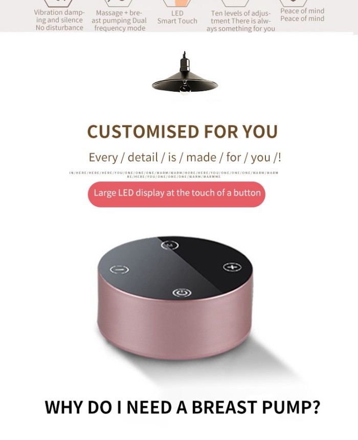 เครื่องปั๊มนมไฟฟ้าแบบกลมด้านเดียวขนาดเล็กของโรงงานของเรามีการตั้งค่าที่สะดวกสามแบบเพื่อให้ง่ายต่อการใช้งาน: ประการแรก โหมดการนวดเพื่อกระตุ้นการผลิตน้ำนมอย่างอ่อนโยนและเตรียมพร้อมสำหรับการแสดงออก จากนั้นโหมดการปั๊มเพื่อการแสดงออกที่รวดเร็วและมีประสิทธิภาพโดยใช้ความพยายามเพียงเล็กน้อย และสุดท้ายคือโหมดการดูดที่เลียนแบบแรงดูดและจังหวะการดูดของทารก ทำให้คุณรู้สึกสบายเหมือนดูดนมแม่ มาพร้อมกับแบตเตอรี่ขนาด 1500mAh ในตัวที่ใช้งานได้นานสองชั่วโมงต่อการชาร์จหนึ่งครั้ง ทำให้เชื่อถือได้ไม่ว่าคุณจะพกพาไปที่บ้านหรือระหว่างเดินทาง โดยไม่ต้องชาร์จใหม่ตลอดเวลา อยากปั๊มข้างเดียวหรือทั้งสองอย่าง? เป็นทั้งสองอย่าง! การสูบน้ำด้านเดียวเหมาะสำหรับการใช้งานเป็นประจำ การปั๊มสองด้านช่วยให้คุณทำงานทั้งสองด้านได้พร้อมๆ กัน ซึ่งมีประสิทธิภาพมากกว่ามากและเหมาะสำหรับคุณแม่ที่มีปริมาณน้ำนมสูงหรือผู้ที่เร่งรีบ